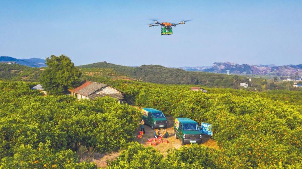 無人機騰空而起,30分鐘“閃送”枝頭鮮橙直達郵件處理中心。