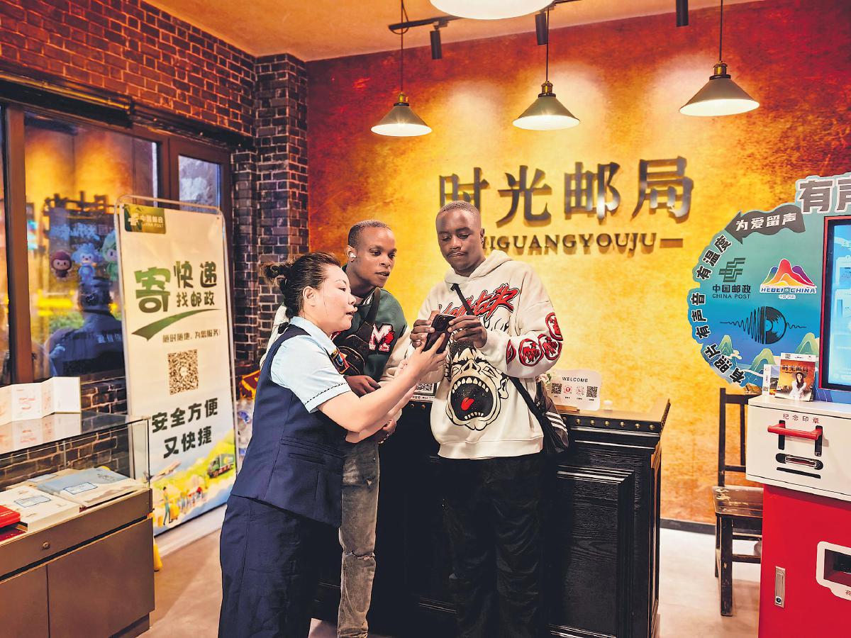 2025年9月,外國游客來到邢臺(tái)市分公司在第九屆河北省旅游產(chǎn)業(yè)發(fā)展大會(huì)主會(huì)場旁打造的時(shí)光郵局打卡。