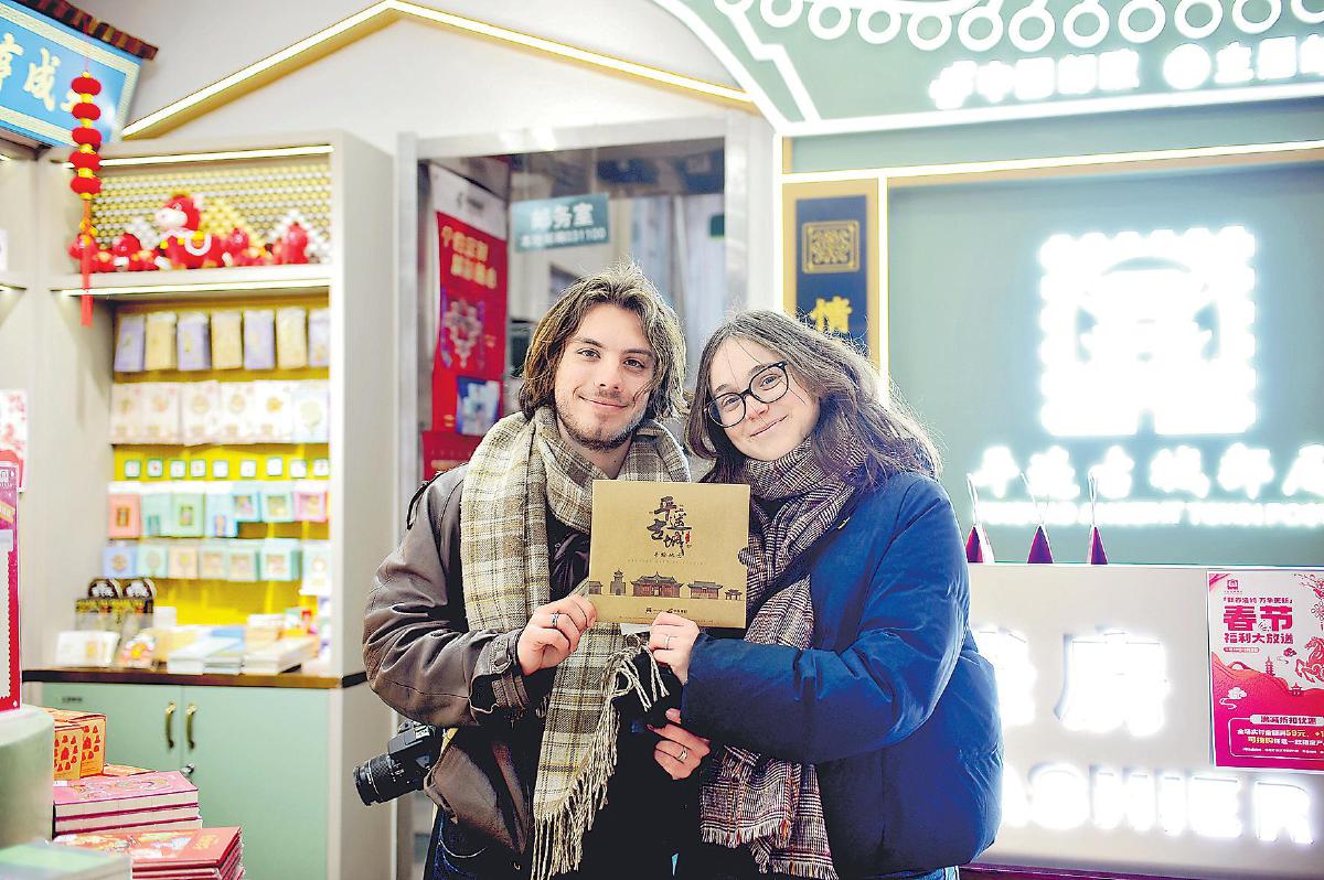到中國過春節(jié),正在成為外國游客的新時(shí)尚。2月10日,北方小年這天,位于山西省晉中市平遙縣的平遙古城年味兒正濃——青石板路上,紅燈籠映著明清古建筑,灶糖的甜香混著墨香飄滿街巷。而在平遙古城主題郵局里,方寸郵品間匯聚著中外游客的笑臉,成為千年古城里跨文化交流的別樣場(chǎng)景。