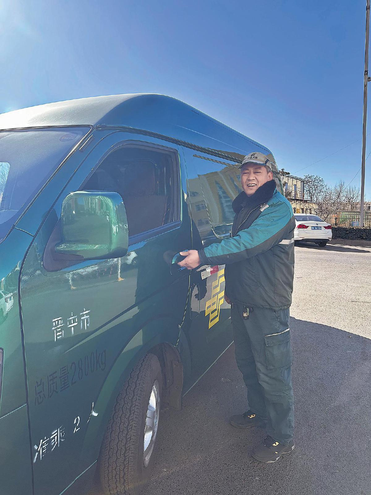 從攬投部大院再出發(fā)時(shí),已是10點(diǎn)50分?!耙菦](méi)有第二個(gè)上門攬收電話,11點(diǎn)半前應(yīng)該能投遞完了。不管什么時(shí)候,只要客戶有寄件需求,我們必須按約定時(shí)間上門,這是工作要求。”張海院向記者解釋道。這趟投遞的第一個(gè)客戶在河南村,離縣城5公里。收件人村民張女士連聲感謝:“沒(méi)想到大過(guò)年的,你們還能給我們送快遞?!?2點(diǎn)多,車?yán)锏目爝f終于投遞完畢,等從村口出來(lái)時(shí),正好碰到一輛綠色郵車疾馳而過(guò)?!翱吹?jīng)],他們這是剛從沾尚鎮(zhèn)下來(lái),現(xiàn)在要到王寨鄉(xiāng)送郵件去。”張海院告訴記者,最忙的時(shí)候是春節(jié)前,那時(shí)候包裹最多,每天投遞到晚上九十點(diǎn)是常事。當(dāng)被問(wèn)及“春節(jié)期間,為了送郵件,不能陪家人吃團(tuán)圓飯,有沒(méi)有覺(jué)得遺憾”時(shí),這位56歲的漢子說(shuō):“遺憾談不上,我們干的就是這份工作。不管是不是過(guò)年,只要客戶需要,我們保證到?!痹倩氐綌埻恫繒r(shí),同事們都已投遞完畢,“職工小家”里人聲鼎沸,單位特意準(zhǔn)備的熱騰騰的餃子已經(jīng)出鍋,大家圍坐在一起,過(guò)了一個(gè)別樣的“團(tuán)圓年”。
