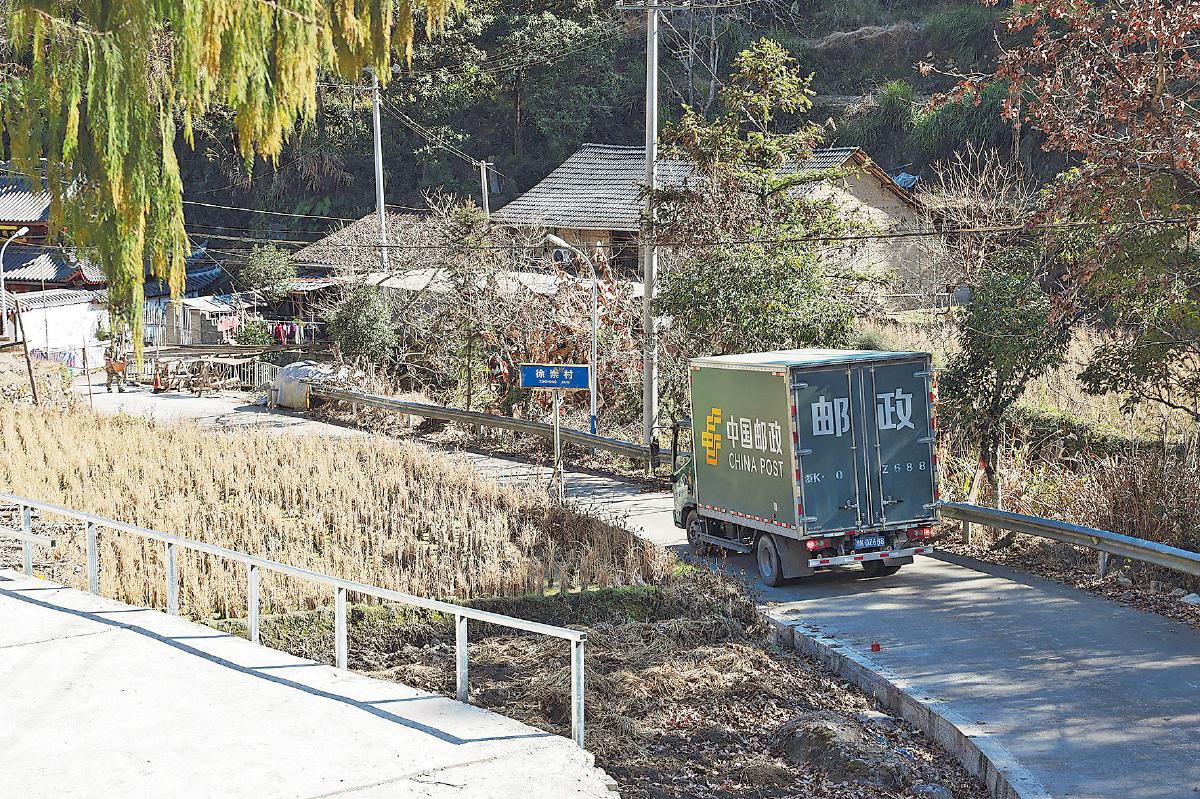景寧郵政客貨郵專車開進(jìn)徐崇村,將鄉(xiāng)村土特產(chǎn)推向全國大市場。□吳俊杰 攝