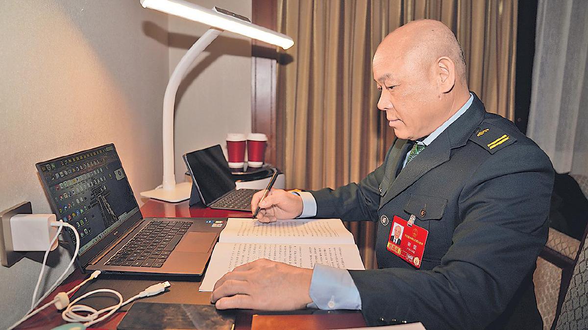 采訪結(jié)束,夜色更深,謝堅又伏案打磨第二天的發(fā)言稿。從伶仃洋上的郵政所到人民大會堂,九年履職,他始終扎根基層、為民發(fā)聲,用一份份務(wù)實建議,書寫著人大代表的責任與擔當。