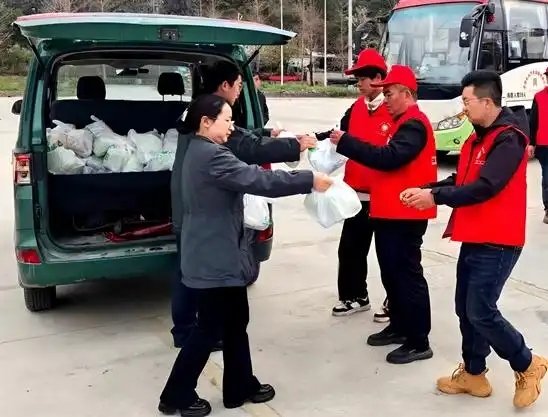 關(guān)嶺自治縣:關(guān)嶺郵政志愿者全程跟車護(hù)送,將53名務(wù)工人員安全送至貴陽北站高鐵站,并為每位務(wù)工人員送上包含方便面、礦泉水、面包的小禮品,用細(xì)致陪伴為返崗旅途增添暖意。