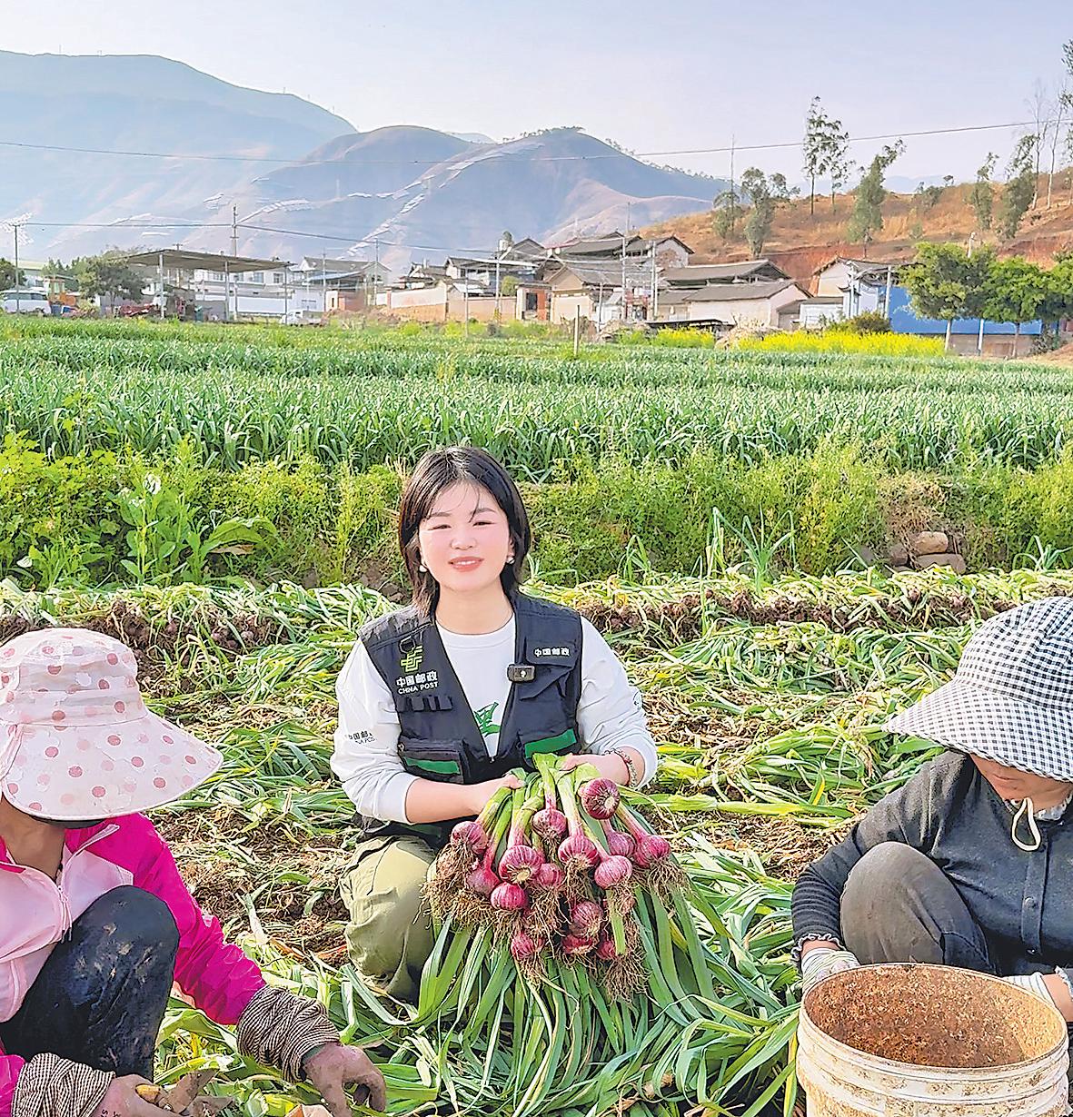 初春清晨,薄霧輕籠著山東省濟(jì)寧市金鄉(xiāng)縣的廣闊田野。這里出產(chǎn)的大蒜,是國家地理標(biāo)志產(chǎn)品。在郵政助農(nóng)直播間里,“95后”郵政主播小劉正對著鏡頭熱情介紹,手中托起一顆飽滿瓷實的紫皮蒜:“家人們看,這就是我們金鄉(xiāng)的四六瓣紫皮蒜,從恒溫保鮮庫直接發(fā)貨,蒜香特別濃郁!”她身后的合作社倉庫內(nèi),工人們忙碌而熟練地分揀、打包、貼單,流程井然有序。不遠(yuǎn)處,幾輛印有“中國郵政”字樣的綠色廂式貨車已準(zhǔn)備就緒。很快,這些優(yōu)質(zhì)大蒜就將通過郵政四通八達(dá)的網(wǎng)絡(luò),送到全國各地消費者的手中。