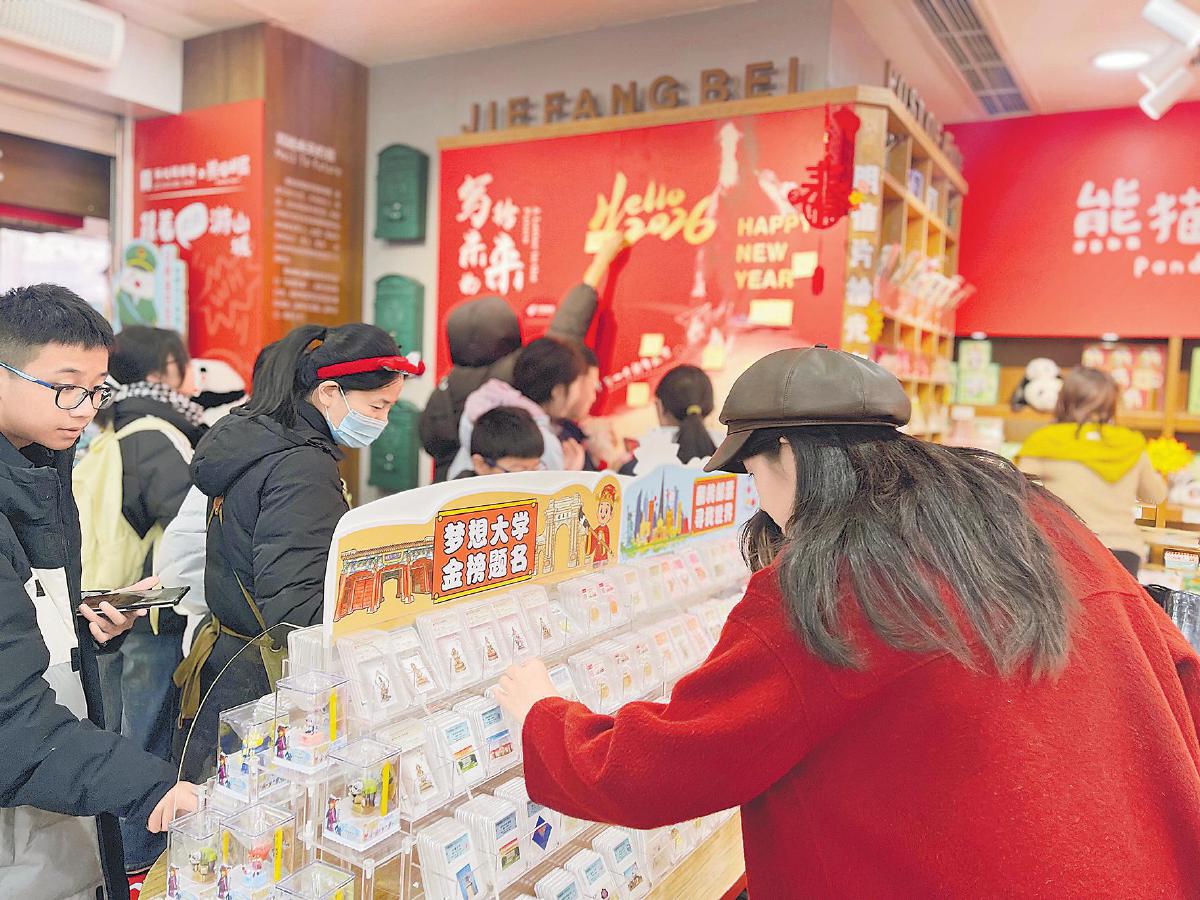 “過(guò)年了,讓遠(yuǎn)在海外的朋友們也感受下中國(guó)年。”春節(jié)期間,家住重慶南坪的程阿姨來(lái)到解放碑主題郵局,挑選了《郵票上的重慶》郵冊(cè)、重慶地標(biāo)冰箱貼、馬年生肖郵冊(cè)、熊貓盲盒等禮物,寄給國(guó)外的好友們。對(duì)她來(lái)說(shuō),這些禮物既有特色,也承載著山城文化記憶。
