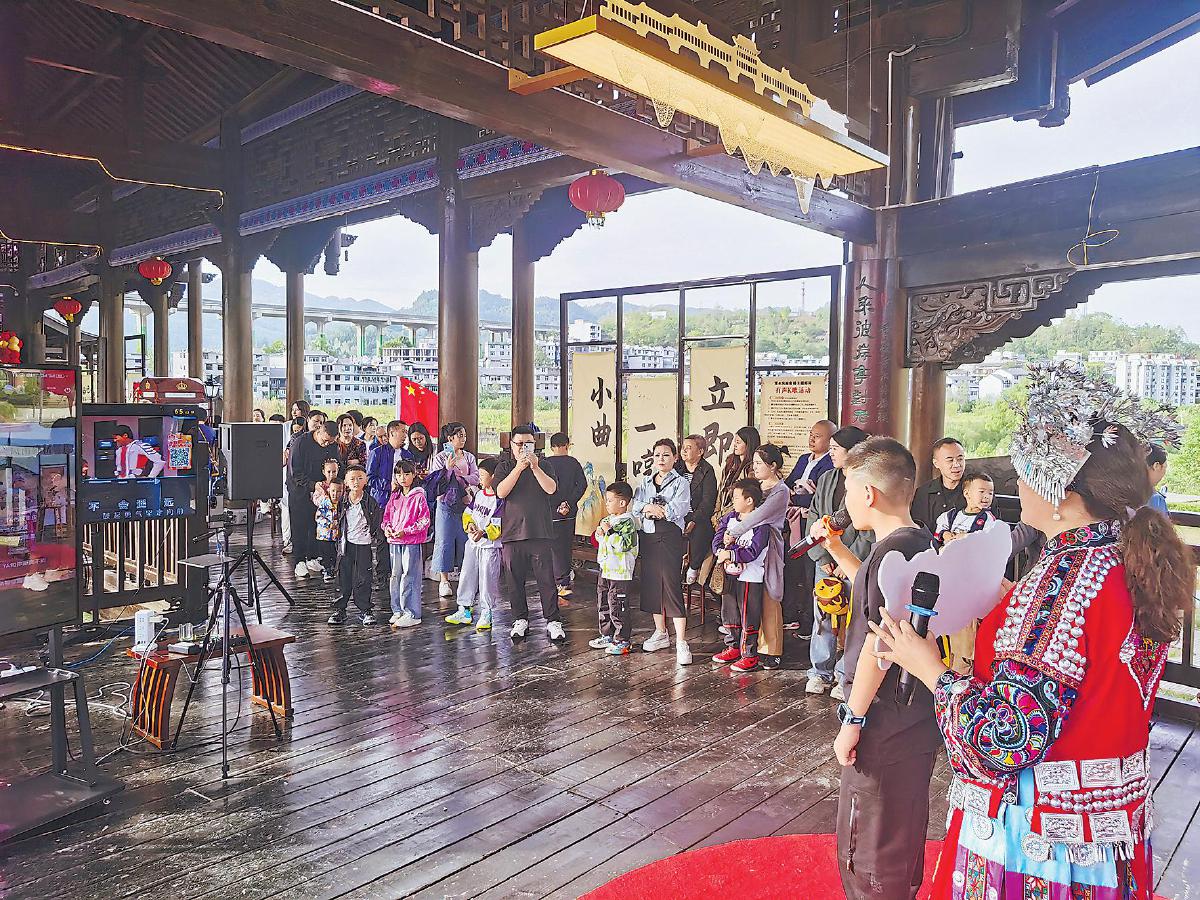 濯水風(fēng)雨廊橋免費(fèi)歌唱活動(dòng)引來(lái)游客駐足?! 醢浊矍邸z
