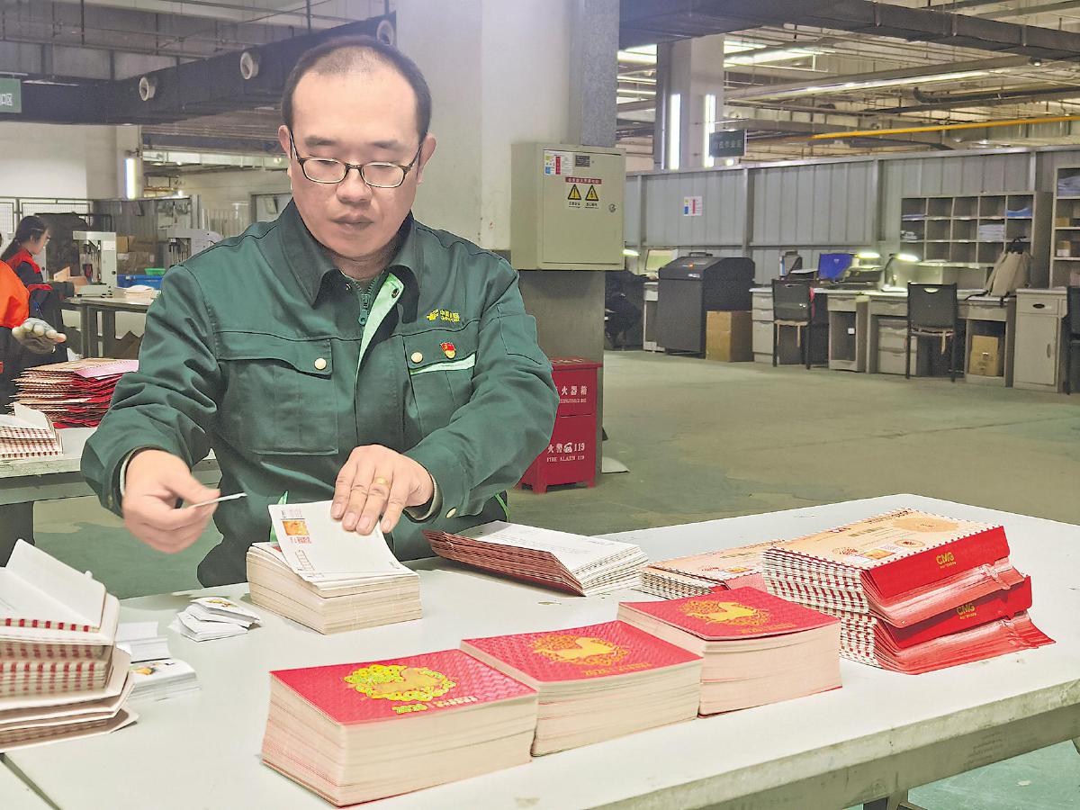 手工封裝車間是最忙碌的區(qū)域之一。“封好這條不到20厘米長、不足2厘米寬的封舌,其實很考驗功夫。封口不牢,郵寄途中可能散開;膠水多了,又可能粘連郵戳或地址。所以,每一封都得手工操作,膠水量必須恰到好處?!笔止し庋b車間班長馬寅東介紹起團隊的獨門訣竅。他帶領團隊在信封到貨后反復測試,摸索出最合適的膠水用量和晾干時間。在封裝過程中,工作人員還要逐一核對明信片數量和附帶的貼紙,輕輕按壓封口,確保嚴絲合縫,再整齊擺放、晾干后分批裝箱。