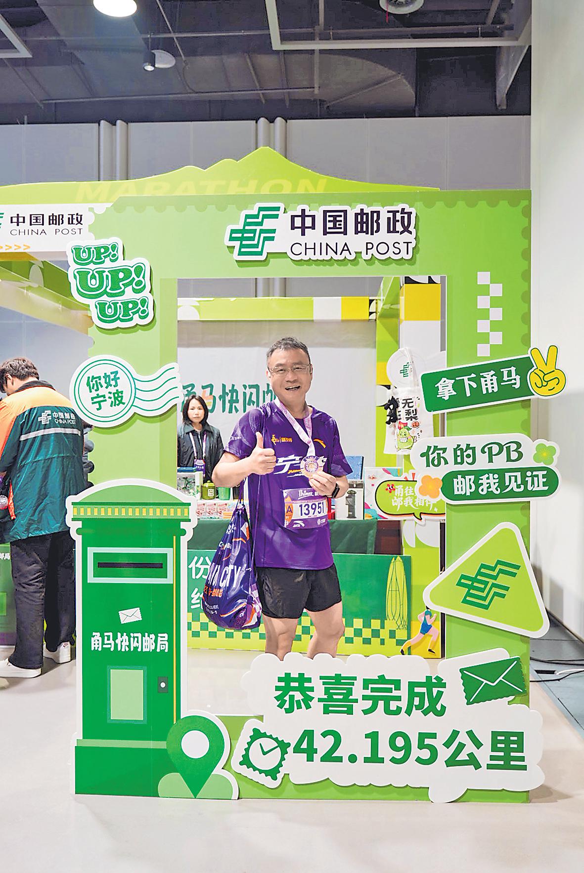 除了情感紀念服務,快閃郵局更是功能齊全的全能服務站,現(xiàn)場開設“甬馬”文創(chuàng)市集,聯(lián)名郵折、主題周邊等產(chǎn)品琳瑯滿目,把賽事記憶轉(zhuǎn)化為可珍藏、可帶走的文創(chuàng)佳品;針對外地選手行李攜帶不便的痛點,郵局專門提供“一站式”寄遞服務,無論是浸滿汗水的運動衣物,還是剛選購的賽事文創(chuàng),都能現(xiàn)場打包寄遞,真正實現(xiàn)“輕裝參賽、輕松返程”。一位來自外地的跑友不禁感慨:“這個服務太人性化了!郵政想得太周到,讓我覺得寧波這座城市很溫暖?!?/p>